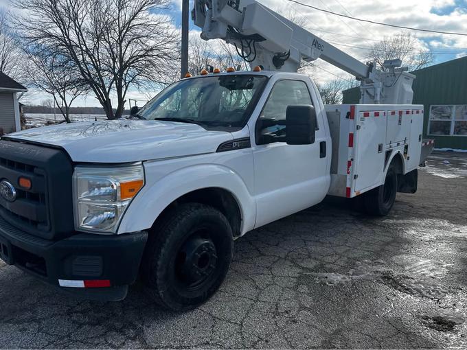 3995 2014 FORD F350 SD 2WD, FLORIDA TRUCK NO RUST. 6.2 V8 GAS, AUTO, AC, 12' FIBERGLASS BOX, 35' WORK HT ALTEC BOOM, 191K MI, LIKE NEW. $13900